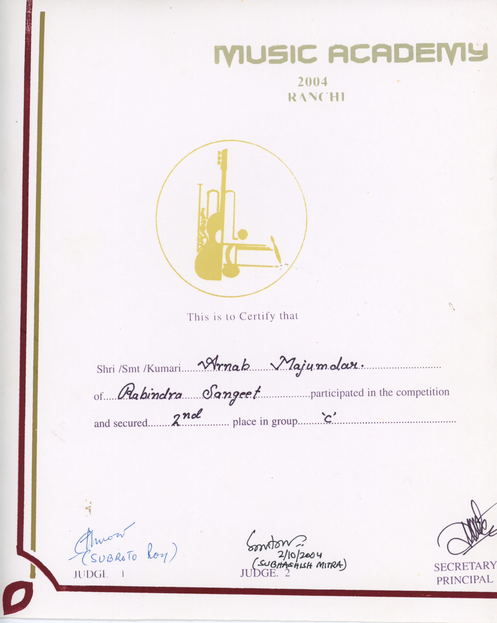 2nd prize in Rabindra Sangeet Category by Music Academy, 2004